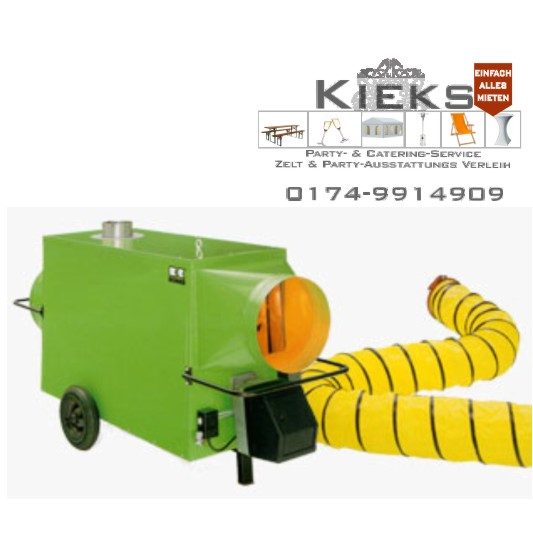 Bei KIEKS Partyverleih mobile Warmluft-Heizungen(Heizöl, Diesel), Terrassenstrahler, Heizpilze, Elektro-Heizung mieten.