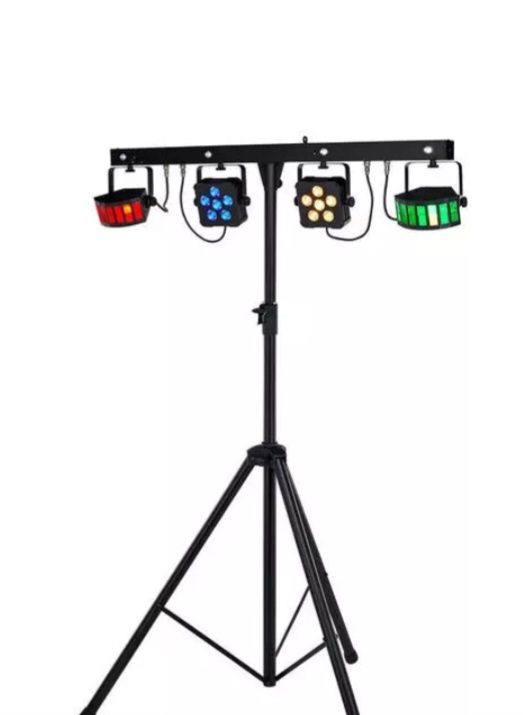 Einfach und schnell bestehend aus: 4er-Licht-Bar mit 2-LED-Scheinwerfern, 2-LED-Derby-Lichteffecte, Stroboskop mit 4x 2 W LEDs in weiß.