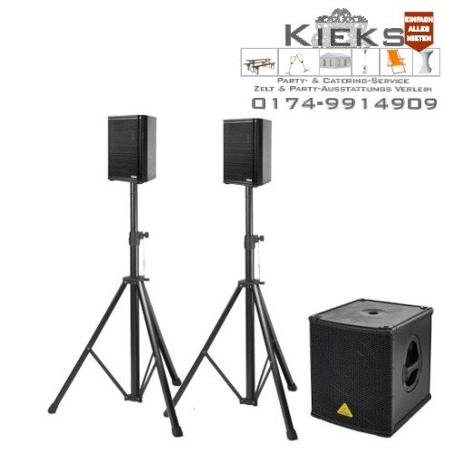 2x Aktive 2-Wege Fullrange-Box, 1x aktiv-Subwoofer, 2xStativ, Kabel, 1x 2-Kanal USB-Audiointerface